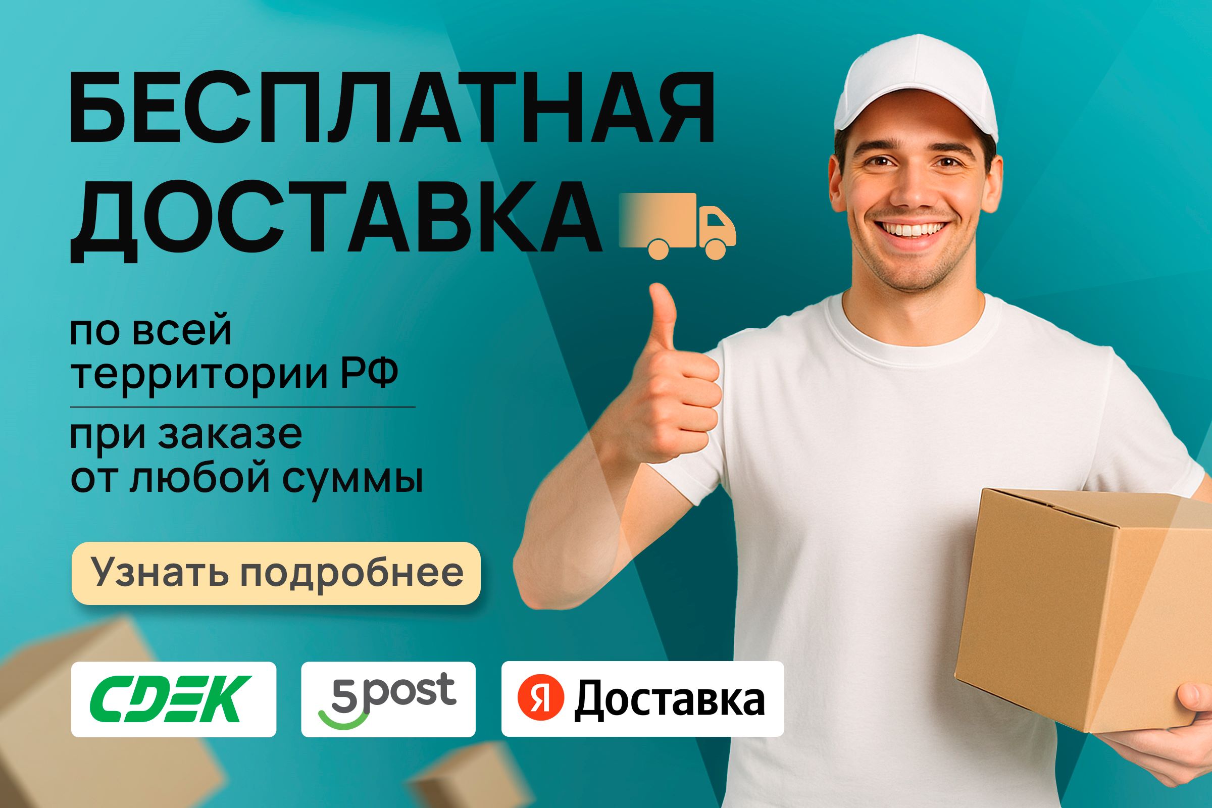 Да, у нас бесплатная доставка сервисом СДЭК по всей территории РФ, при заказе от любой суммы