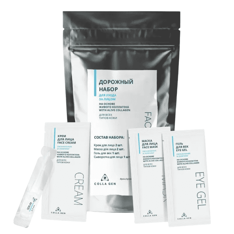 COLLA GEN, Дорожный набор для ухода за лицом - благодаря travel-формату любимые средства всегда будут у вас под рукой, чтобы вы оставались прекрасной даже вдали от дома. Они с легкостью помещаются в ручной клади.